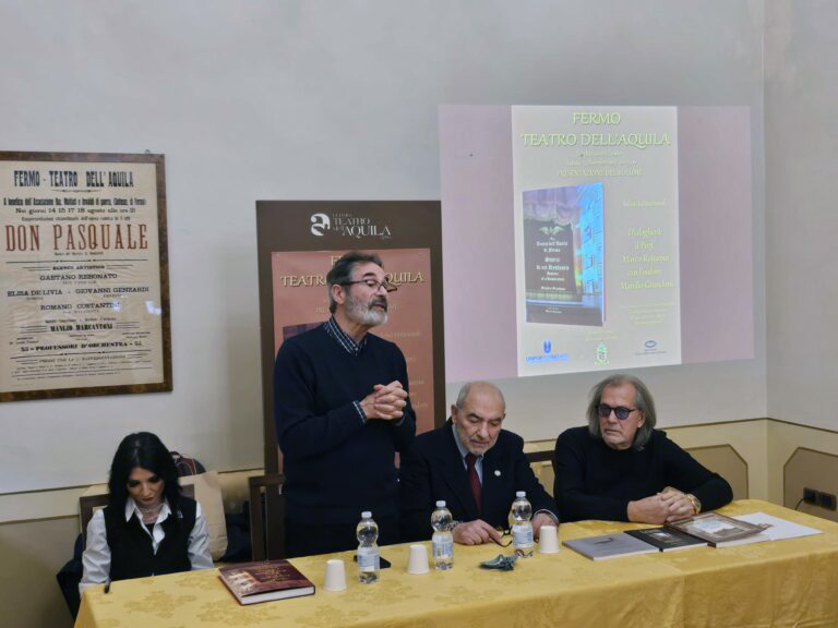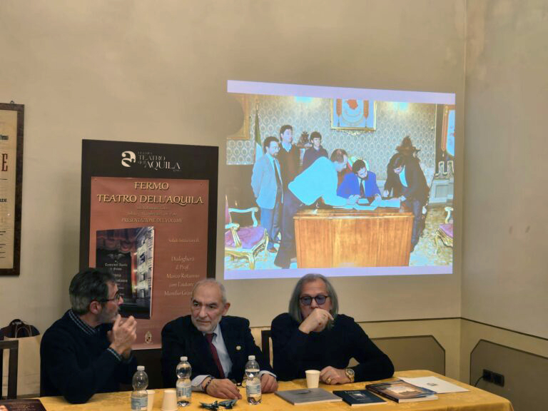 FERMO - Un incredibile lavoro di ricostruzione storica. Le foto di Manilio Grandoni, raccolte nel libro ‘Storia di un restauro’, fanno scorrere davanti agli occhi dei lettori la storia del gioiello della città, di quello che negli anni insieme con il mappamondo ne è diventato il simbolo: il teatro dell’Aquila. “Il teatro è la casa di ogni fermano. Partendo dal 1997, quando i lavori di restauro, hanno poi permesso a tutti di vivere un luogo degno di una comunità che aspira al bello” introduce Ettore Fedeli, al tempo sindaco dell’avvio dei lavori. “Manilio è riuscito a entrare nei cantieri, osservare e fotografare i lavoratori. Oggi vediamo quello che c’è dietro la bellezza che tutti vediamo. Nel libro c’è la storia di quello che c’è dietro un’opera pubblica, di ognuna. È la storia di scelte progettuali, di scelte economiche, di lavori che hanno permesso di renderlo unico. è la storia di chi l’ha vissuto” prosegue Fedeli che con l’Unipop continua a lavorare sulla memoria, ridando a ogni persona il suo ruolo. E Manilio Grandoni, con i suoi scatti, rende merito a chi si muoveva nell’ombra, sotto il palco, tra le volte del soffitto: ai lavoratori. L’8 marzo del 1997 è la data di rinascita, il giorno in cui il pubblico ha preso possesso del luogo. Da quel giorno la domanda è stata: come far lavorare al meglio la struttura? In tanti ci sono riusciti e di certo ci sta riuscendo Micol Lanzidei, oggi assessora alla cultura, allora 15enne curiosa nell’ammirare questo luogo recuperato.“La memoria non è rimpianti, è portare la nostalgia più bella nel futuro e nella vita quotidiana del teatro” la chiosa di Fedeli. L’assessora Lanzidei lo ha ascoltato e ha rilanciato: “Non stiamo raccontando una storia fatta d’immagini, significa restituire respiro e voce un luogo che è molto di più di un semplice tetro. Per Fermo e i fermani è l’anima, è il cuore che batte al centro della città da secoli. Che ha vissuto la storia, le attese, i ritorni, i silenzi e gli applausi. Questo libro fotografico - prosegue l’assessora - è un atto di amore e di cura. La testimonianza visiva di uno dei momenti più complessi e delicati, e per questo straordinari, che il teatro ha vissuto: il suo restauro. Ogni immagine nasconde una rinascita, ogni dettaglio cela un gesto umano: la mano che dipinge, lo sguardo il metro che misura, un legno antico che rinasce o un velluto da proteggere. Un libro che racconta anche gli invisibili che hanno reso visibile il bello del simbolo della città”.
